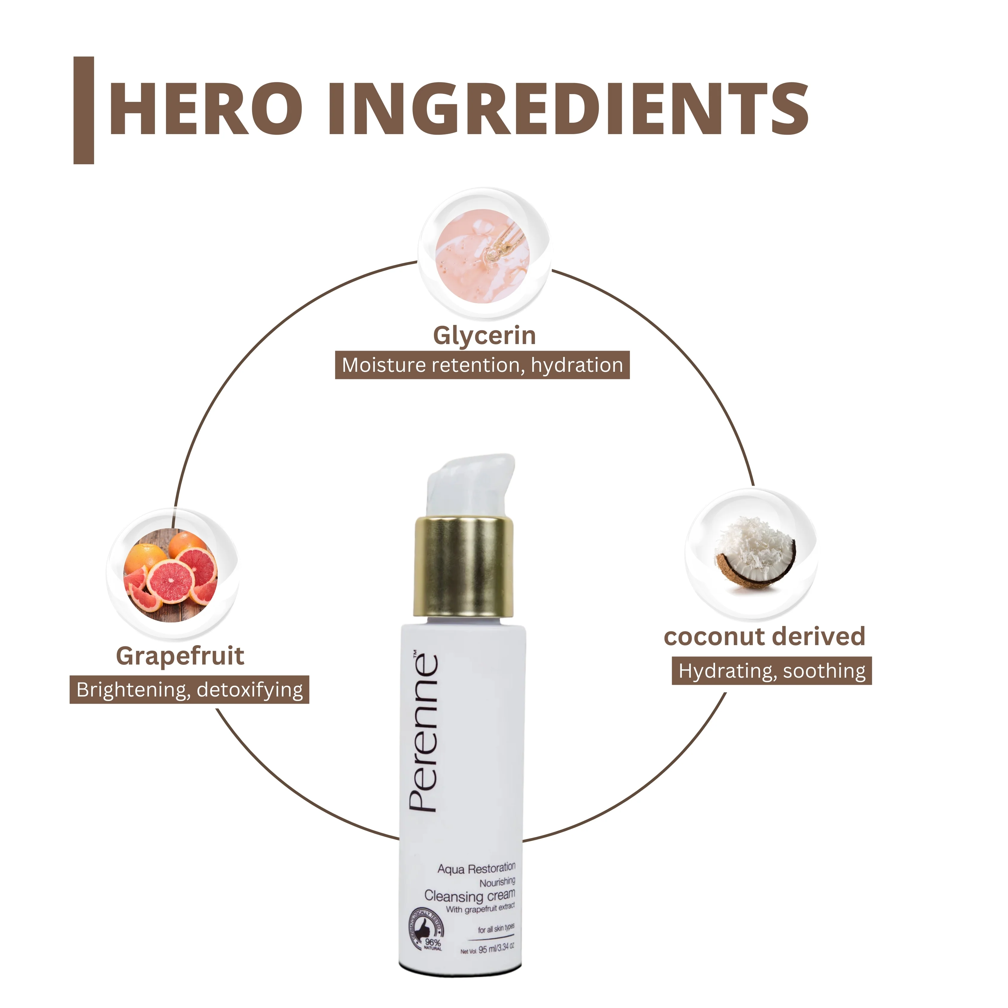 Perenne Nourishing Cleansing Cream | Natural Makeup Remover | Hydrating & Gentle Cleanser | Grapefruit & Glycerine | Paraben-Free & Silicone-Free (95ml)