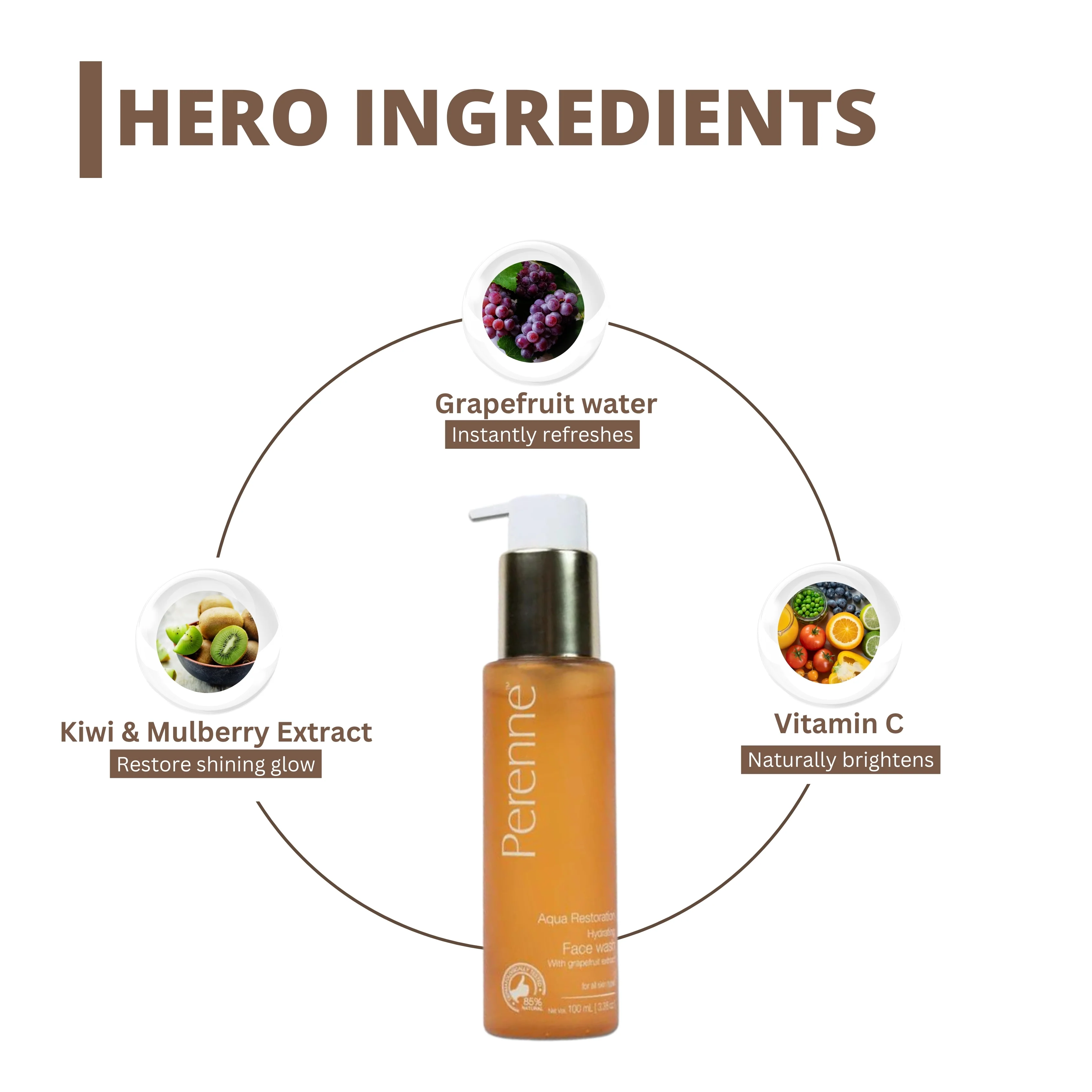 Perenne Aqua Restoration Hydrating Facewash | Deep Cleansing & Hydration | Glycerine, Grapefruit Water & Vitamin C | For All Skin Types | Paraben & Sulphate Free (100ml)